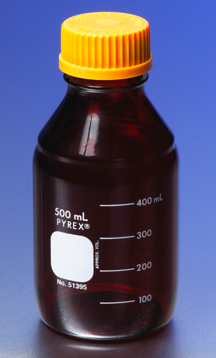 Botellas redondas de 5 l para almacenamiento de medios PYREX® de baja actividad actínica, con tapón de rosca GL45 51395-5L