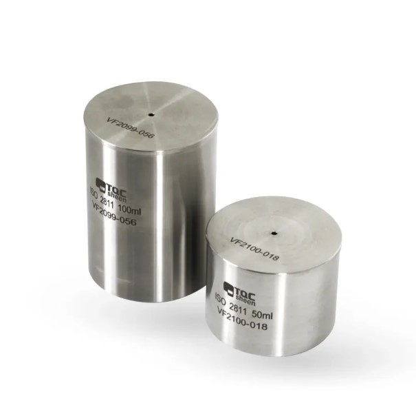 El picnometro de laboratorio o copa de gravedad específica TQC Sheen , también conocidos como copas de densidad, están diseñadas para proporcionar mediciones precisas de la densidad de un líquido.