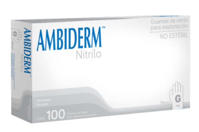 GUANTE NITRILO SOFT NO ESTERIL LIBRE DE POLVO LIBRE DE LATEX. COLOR AZUL. AMBIDERM