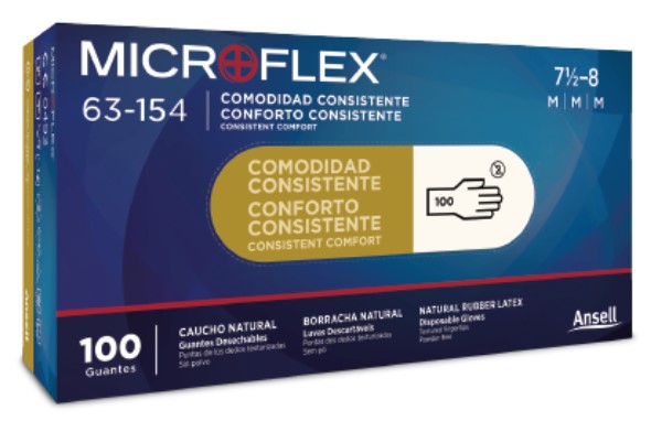 - Agarre seguro: Los guantes de látex desechables MICROFLEX® 63-154 están totalmente texturizados para un agarre seguro tanto en entornos húmedos como secos.