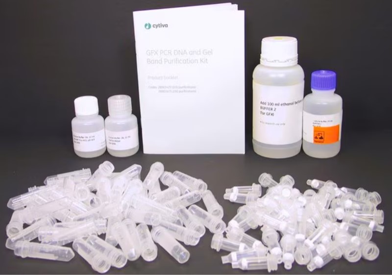 illustra™ GFX™ se ha diseñado para la purificación y la concentración rápidas de los productos de la PCR o de fragmentos de ADN de tamaño comprendido entre 50 pb y 10 kb. Este kit puede utilizarse para purificar el ADN de volúmenes de reacción de hasta 100 μ o de fragmentos de gel de agarosa de hasta 900 mg. El kit combina un tampón caotrópico versátil con una matriz de fibra de vidrio soportada en una columna de espín para la purificación del ADN tanto de la disolución como del gel de agarosa. Las recuperaciones típicas oscilan entre el 60 % y el 80 % para los fragmentos de ADN procedentes del gel de agarosa y hasta el 95 % para los productos de PCR de la disolución. La pureza del ADN es excepcional; se elimina el 99,5 % de los contaminantes. El kit de purificación de las bandas de gel y del ADN de la PCR