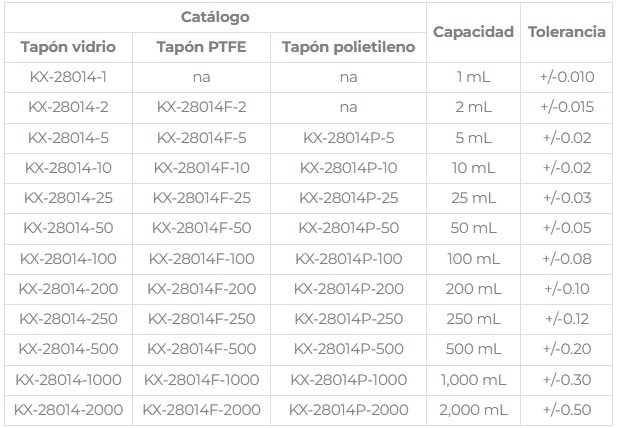 MATRAZ VOLUMETRICO, CLASE A, TAPON VIDRIO KIMAX 28014