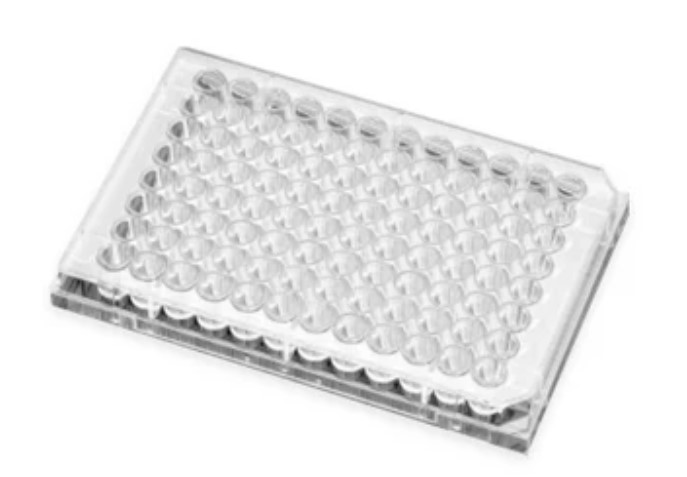 MICROPLACA 96 POZOS FONDO PLANO, NO TRATADA CLARA C/TAPA P/CULTIVO CELULAR EMPAQUE INDIVIDUAL PAQUETE C/10 PIEZAS – FALCON CORNING JC.19699