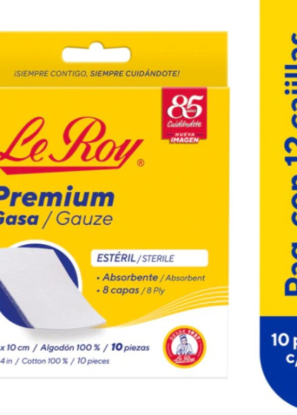 Premium Gasa Estéril de 10 X 10 cm – Paq con 12 cajillas de 10 pz c/u LEROY 3500024