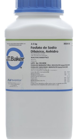 FOSFATO DE SODIO DIBÁSICO ANHÍDRO JT BAKER 3828 Fosfato de Sodio, Dibásico, Anhídro (fosfato de hidrógeno disódico). Adecuado para soluciones Buffer. Reactivo Baker Analized®, JT…