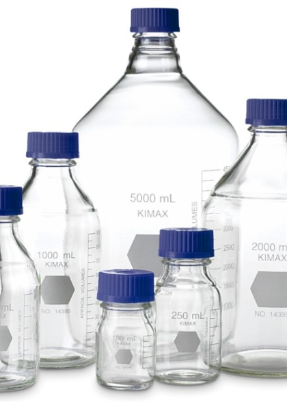 FRASCO DE LABORATORIO GL 45 KIMAX JC.14395 Frasco graduado de laboratorio para cultivo en vidrio borosilicato claro, ideal para el uso general de laboratorio, para…