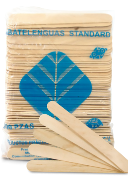 Abatelenguas de madera desechable para exploración con puntas redondas y encerado sin astillas. No es estéril. Catálogo Dimensiones Presentación LAN-031-015 142×18 mm 500 piezas