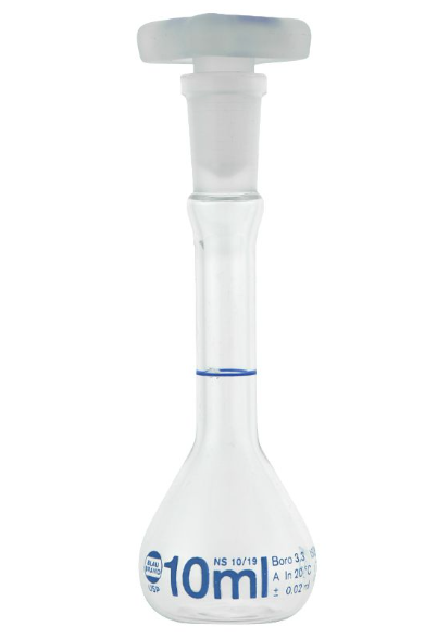 Matraz volumétrico 10ml. Tolerancia ±0.02ml. Clase A DIN USP; incluye certificado por lote USP. Fabricado en vidrio de borosilicato (Boro 3.3). Ajustado por contenido ‘In’.…