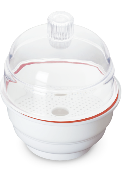 Desecador de plástico con tapa de botón, la base fabricada en polipropileno y la tapa en policarbonato. Se debe aplicar grasa en los bordes para…